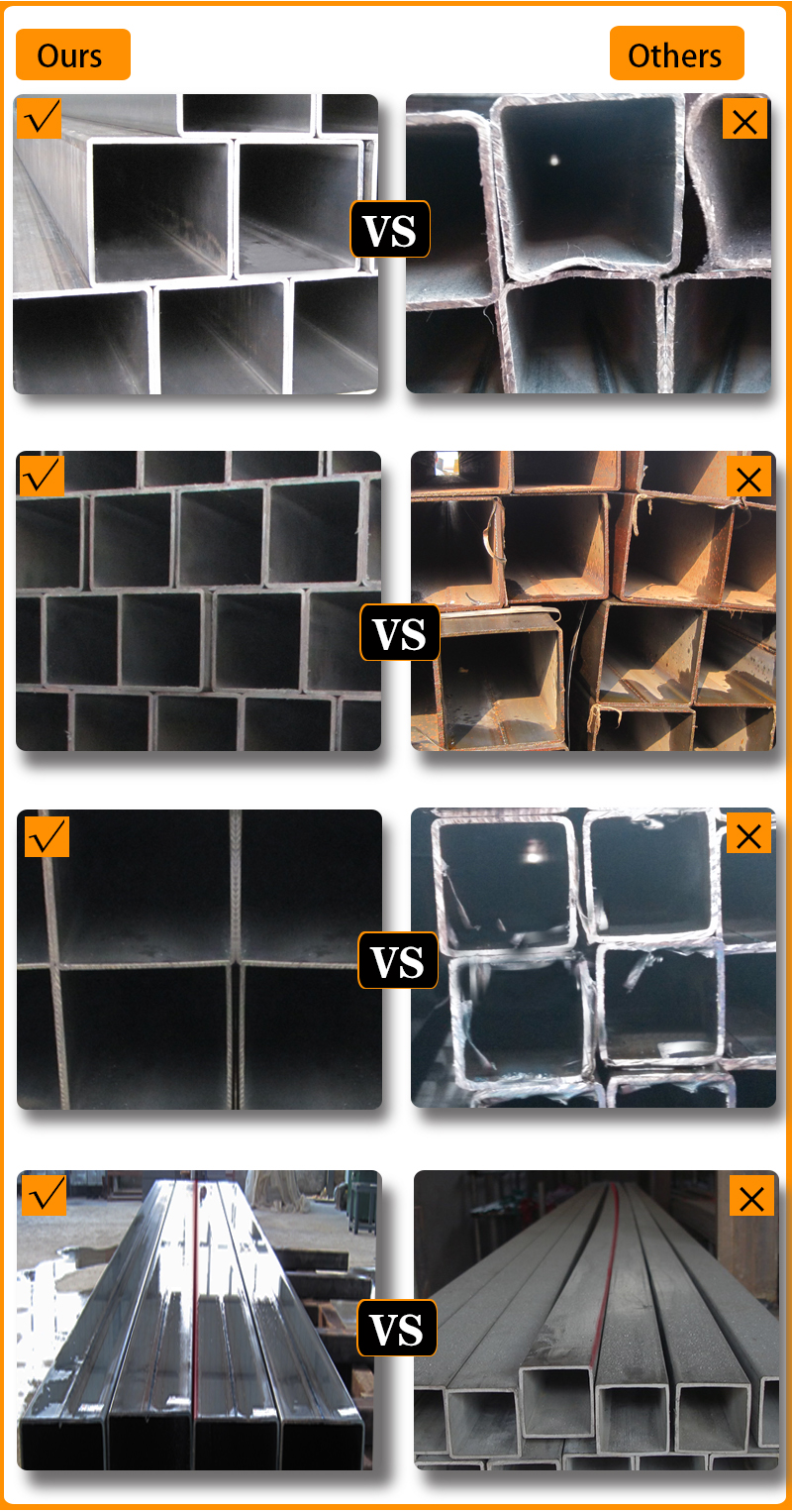 The following picture demonstrates Cold Rolled Square and Rectangular Steel Tube Comparison