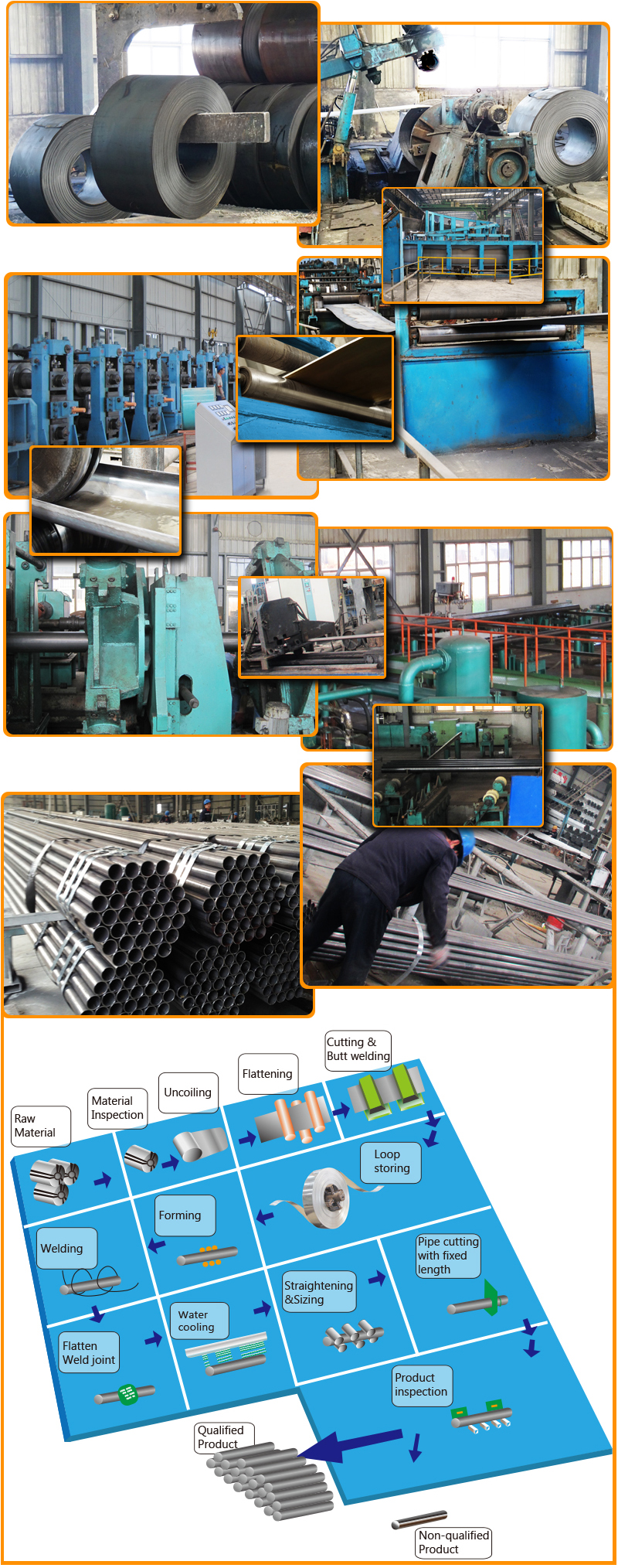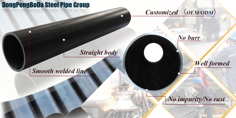 10.Advantages:Quickly delivery date, huge stocks and secret technology. DongPengBoDa Steel Pipe Group is founded in 2006. We have a total of 17 steel production lines, which have advanced technology and equipment and are all controlled by computer. Production process is in strict accordance with the ISO9001 quality.